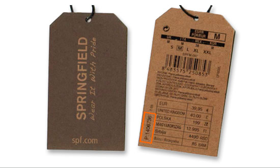 Para buscar un artículo en myspringfield.com puedes usar el buscador que aparece en la parte superior derecha de la página. Sólo tienes que introducir el número de patrón que encontrarás en la etiqueta de la prenda. Introduce estos 7 números y haz click en “Buscar”. También puedes buscar el artículo usando las categorías de productos que aparecen en la parte izquierda de la página.